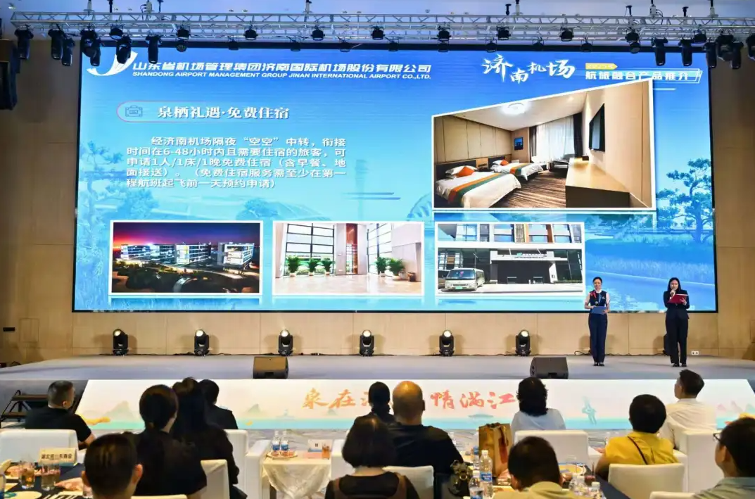 近日,济南机场亮相由济南市文化和旅游局在湖北武汉举办的“泉在济南·情满江城”双城互游暨“这一站,济南”秋季旅游产品推介会。现场,机场携创新升级的“中转+”旅游产品,以航旅融合新实践向武汉及全国旅客发出金秋泉城邀约,为“航空+旅游”市场注入新活力。
